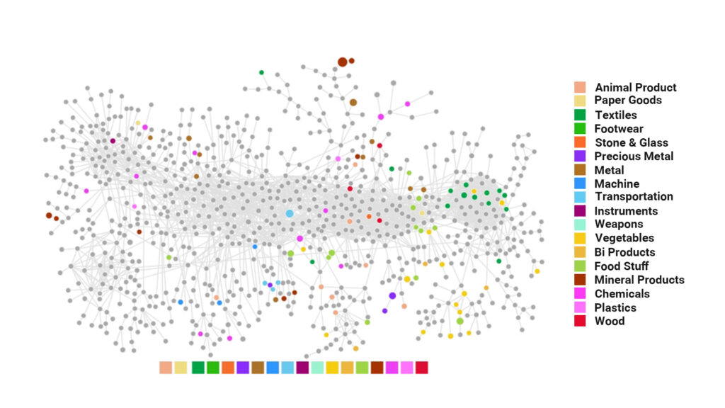 “Пространство продуктов ” можно использовать для прогнозирования будущего экспорта, поскольку страны с большей вероятностью начнут экспортировать товары, связанные с текущим экспортом.